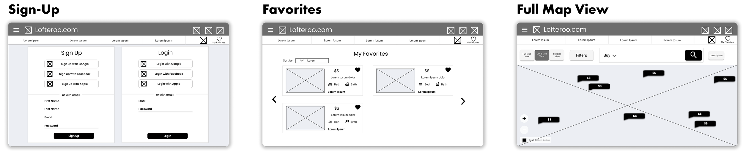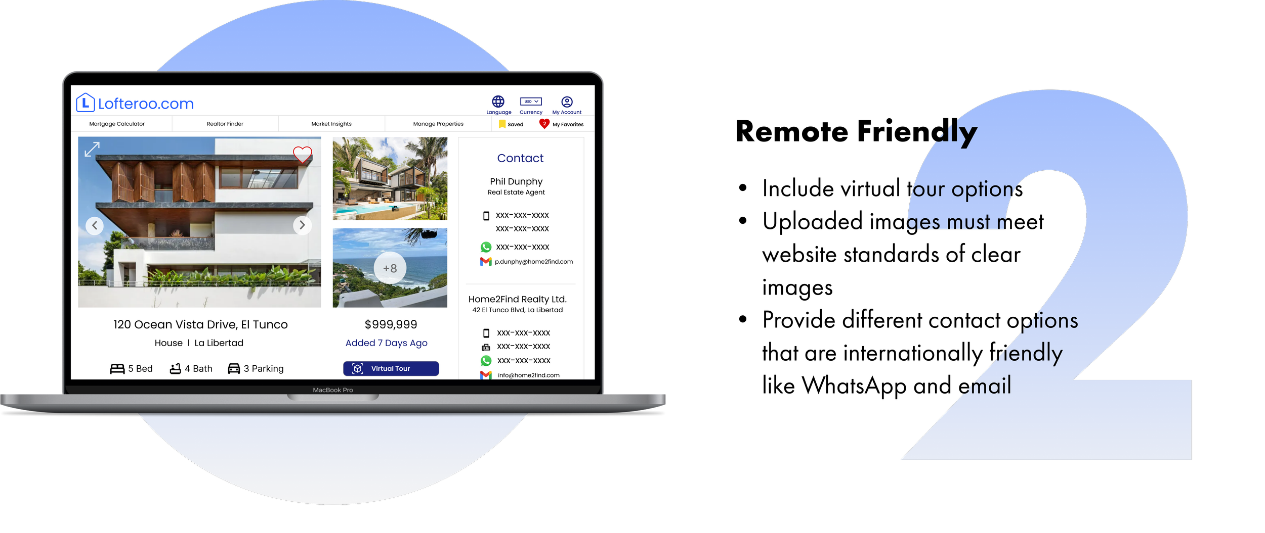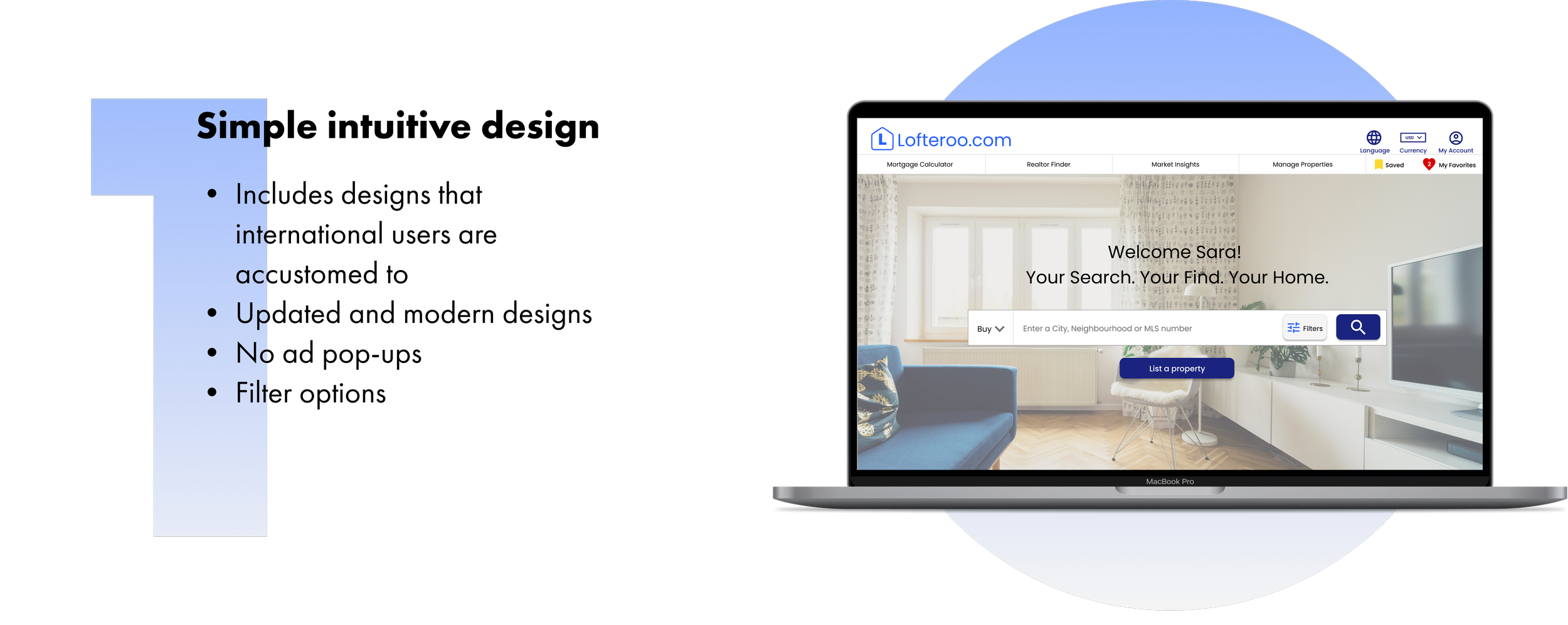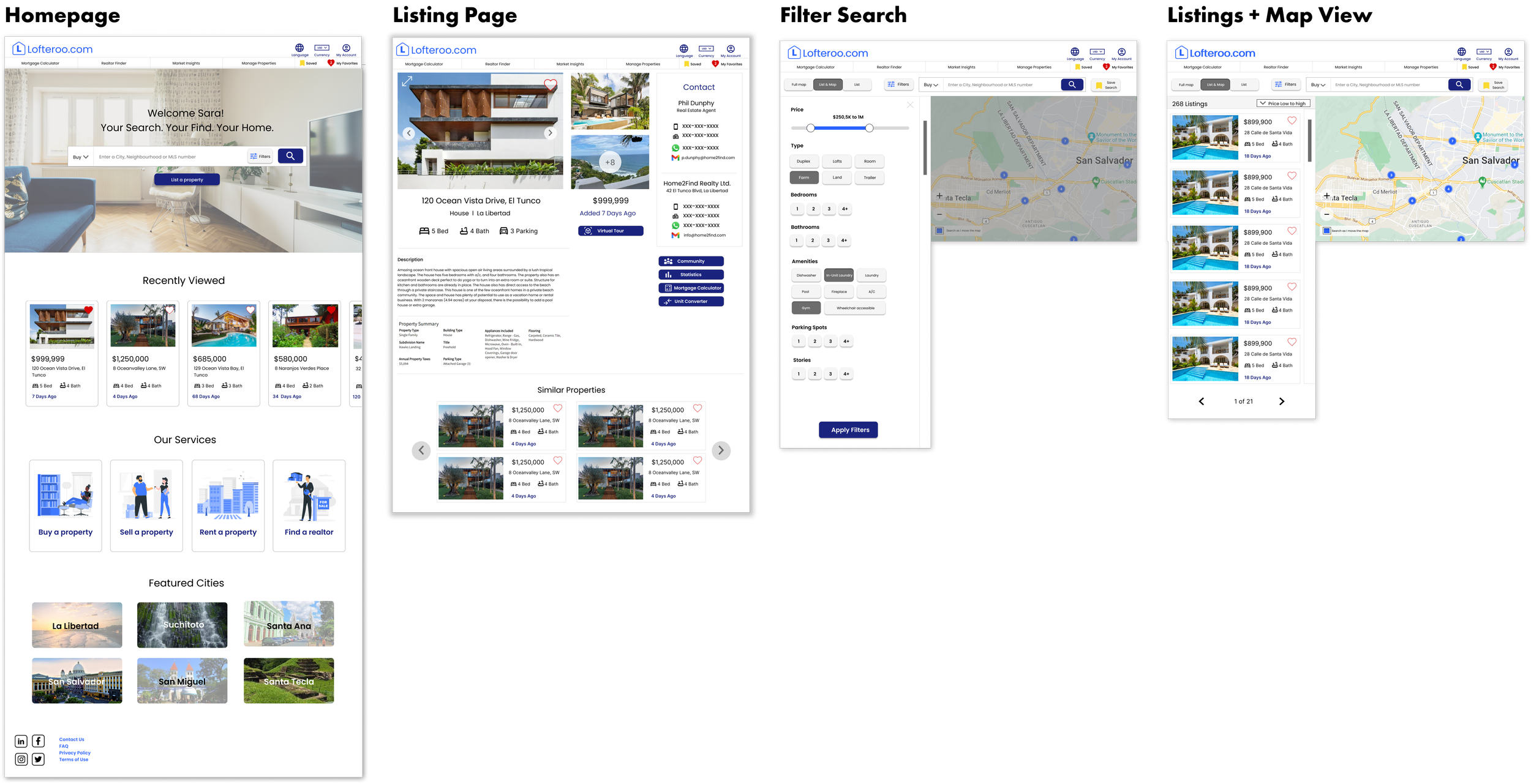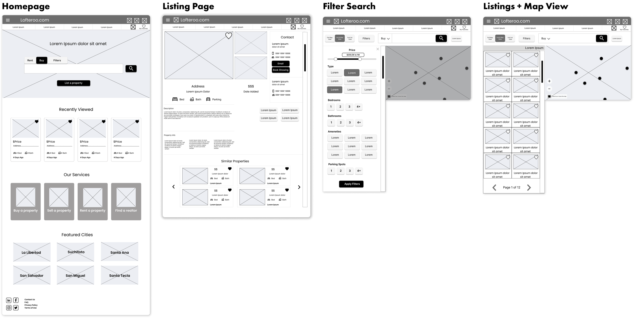 Design a website for Lofteroo that allows users to easily find, view, save & list properties